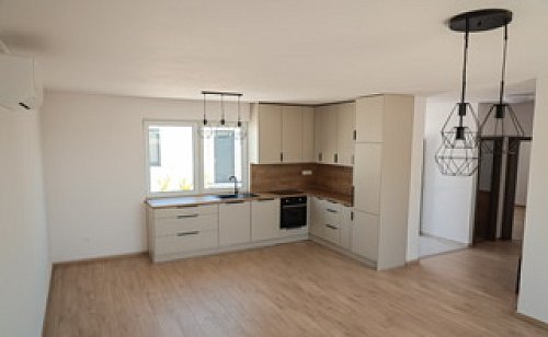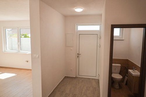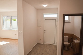 Rodinný dom o rozlohe 92m2 je slnečný a dobre dispozične riešený. Pozostáva zo vstupnej chodby, priestrannej kuchyne s kuchynskou linkou na mieru spojenej s obývačkou s výstupom na terasu, spálne a detskej izby. V kúpeľni sa nachádza rohová vaňa, umývadlo, zrkadlo a toaleta. Druhá toaleta je oddelená.K domu prináleží terasa o výmere 70m2 a miesto na parkovanie. Súčasťou je aj spoločný úložný uzamykací priestor. Domy sú na pozemku chránené pri vstupe elektrickou bránou.
